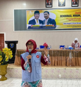 Narasumber dari Forum PAK RMB Master Daisy Novira, memberikan materi antikorupsi kepada siswa-siswi SMA Negeri 2 Kota Bengkulu.